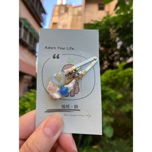 🌱使用材料:樹脂、按扣夾、卡斯比亞、金箔、亮片粉