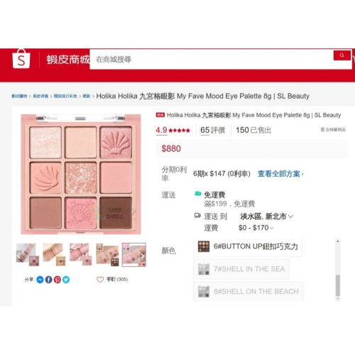 全新百搭萬用盤Holika Holika 九宮格眼影 My Fave 珊瑚貝殼SHELL ON THE BEACH