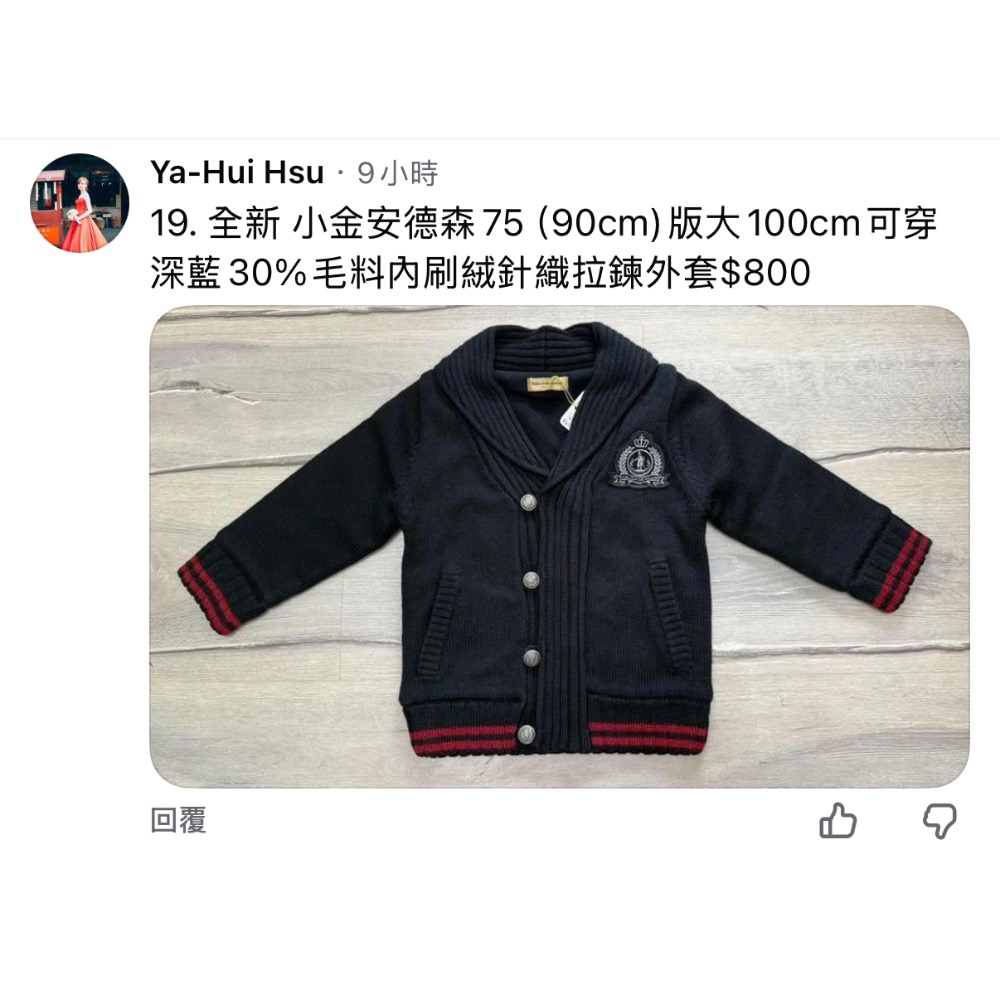 全新 小金安德森75(90cm)版大100cm可穿 深藍30%毛料內刷絨針織拉鍊外套