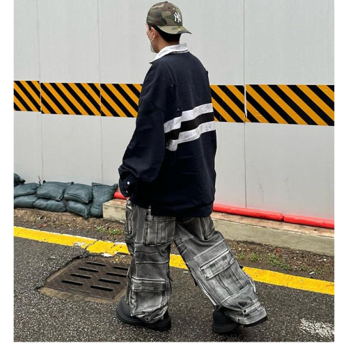 髒染 做舊 破壞 刺繡 字母 潮流 長袖 襯衫