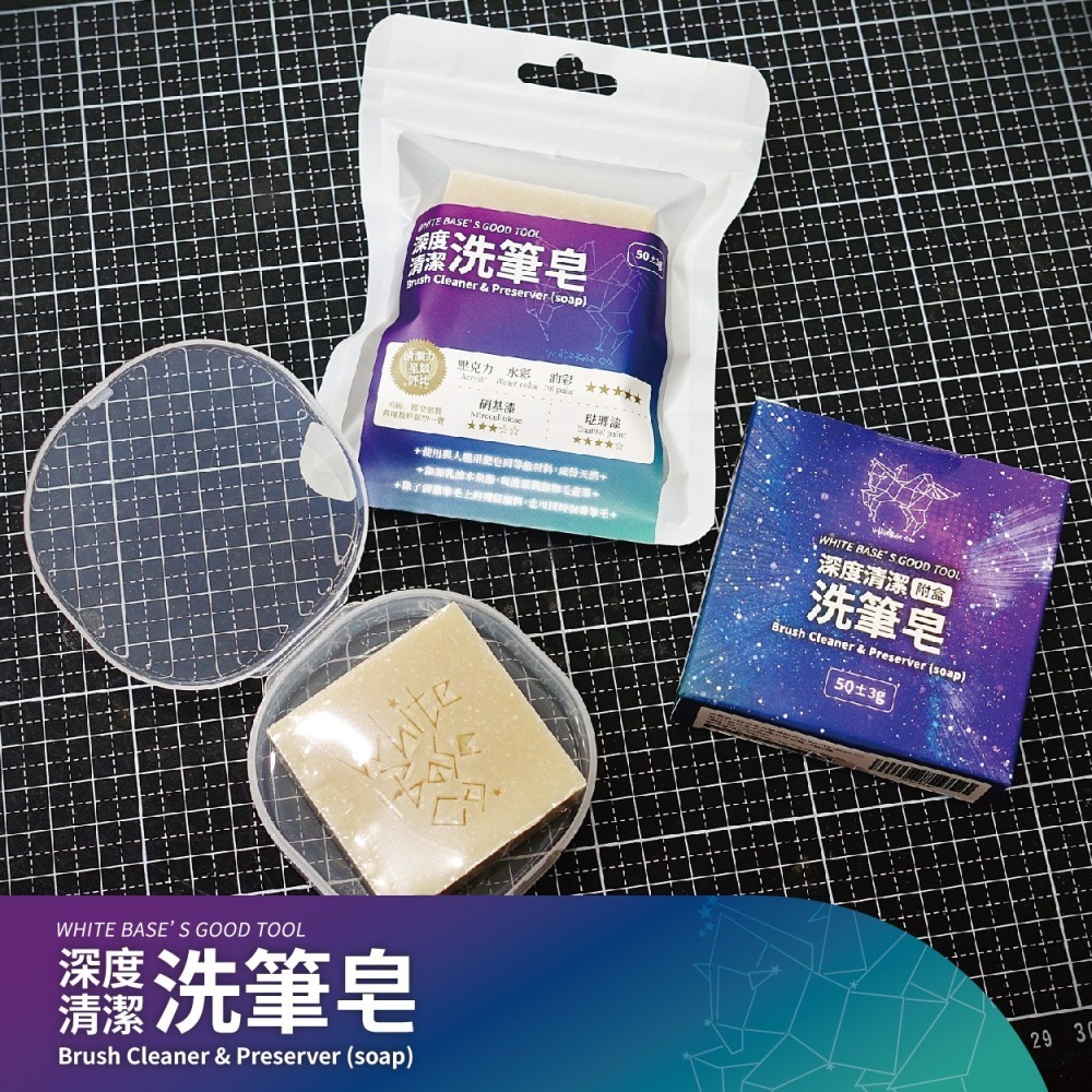 ※避免硬水清洗 *因肥皂遇到硬水(即含鎂、鈣較多的水質)會產生硬質沉澱,請避免用硬水搭配洗筆皂進行清潔。