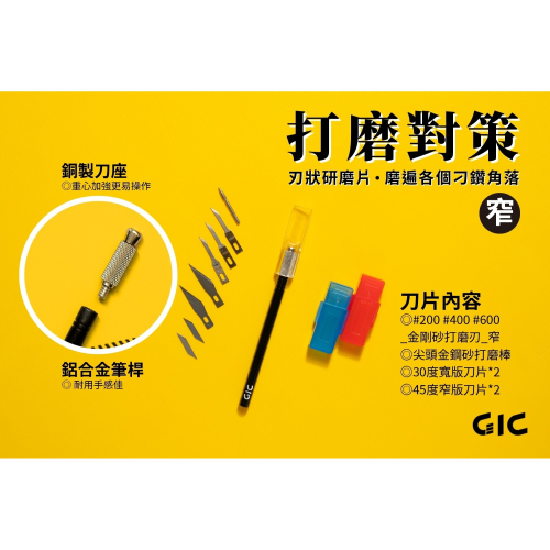 每組附有#200 #400 #600 三片不同番數的研磨刀片