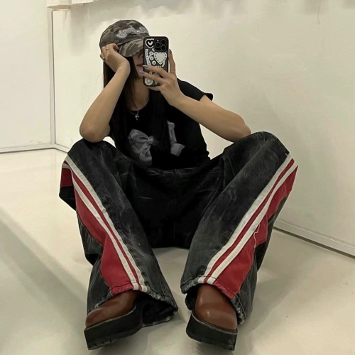 韓國選物🇰🇷水波紋刷色牛仔褲