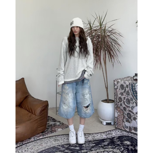 韓國選物🇰🇷迷彩七分造型刷破牛仔褲
