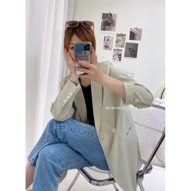 自留推推款MIMIMOLLY|現貨🔥|闆娘實拍【M69】春夏涼薄款奶綠休閒西裝外套 酪梨綠 牛油果綠 薄西裝外套