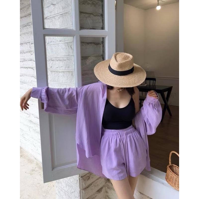 ▫️正韓🇰🇷 防曬襯衫外套鬆緊短褲套裝 ★ ᴹᴵᴹᴵᴹᴼᴸᴸᵞ ᴺᴱᵂ ᴬᴿᴿᴵᵛᴬᴸˢ✨ |商品介紹|ᴅᴇsᴄʀɪᴘᴛɪᴏɴ ✎ 材質不皺更涼快 襯衫上衣涼感降溫防曬好幫手 寬鬆版型舒適不限身型 襯衫有口袋 褲子都有內裡 完全不會透 皮膚白可以黃色、藍色 ⠀ |商品資訊|ᴅᴇᴛᴀɪʟ ✎ ᴄᴏʟᴏʀ_ 藍 / 黃 / 白 / 黑 / 紫 sɪᴢᴇ_ free 商品搜尋 ➪N060 材質➪ 人造絲60%亞麻40% 產地➪ 韓國 ᴹᴬᴰᴱ ᴵᴺ ᴷᴼᴿᴱᴬ🇰🇷 |尺寸表| 上衣 肩寬67胸圍70全長75袖長50公分 褲子 腰圍30-40臀圍55褲檔29全長38公分 ⚝(手工平量cm,誤差值± 1-3屬正常) ᴍᴏᴅᴇʟ資訊⇩ 165ᴄᴍ |50ᴋɢ|平常著s| 〖 購買需知〗 ➪部份退貨使購物金額未達免運標準,需收取原始訂單寄送費用 ➪任意取消訂單、未取貨、自行申請退貨退款、未重下單者,一律不再提供服務 ➪現貨48小時內出貨(不包含假日) ➪預購7-21個工作天(不包含假日‪‪)   ﹋﹋﹋﹋﹋﹋﹋﹋﹋﹋﹋﹋﹋﹋﹋﹋ ❏ 官方ɪɢ ➪ @mimimolly_studio  (歡迎追踨領50元購物金/連線代購/第一手優惠資訊) ❏ ғʙ粉專/sʜᴏᴘᴇᴇ蝦皮 ➪ mimimolly ❏ 官網➪ www.mimimolly-studio.com ﹋﹋﹋﹋﹋﹋﹋﹋﹋﹋﹋﹋﹋﹋﹋ #穿搭日常 #女裝 #時尚  #正韓 #正韓服飾 #韓國服飾  #韓國女裝 #韓國直送 #東大門
