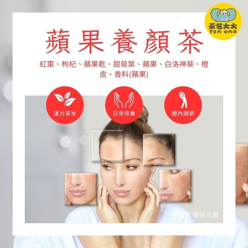 紅棗、枸杞、蘋果乾、甜菊葉、蘋果、白洛神葵、橙皮、香料(蘋果)