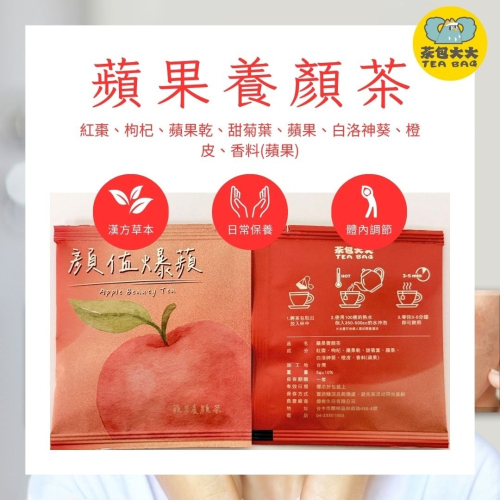 紅棗、枸杞、蘋果乾、甜菊葉、蘋果、白洛神葵、橙皮、香料(蘋果)