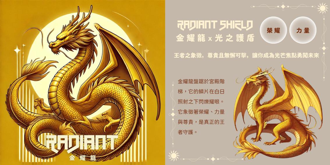 金耀龍象徵『成功』、『榮耀』與『自信』 ,如同閃耀的金光,無論身在何處,你都能散發耀眼光芒。
