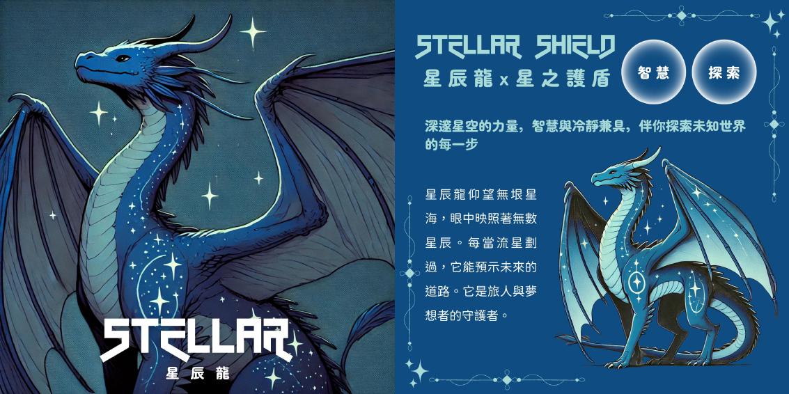 星辰龍象徵『 理想』、『遠見』與『智慧』 ,如同夜空中閃耀的星辰,總能為人們照亮未知的道路。