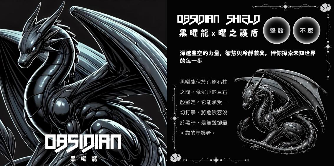 黑曜龍象徵『深沉』、『力量』與『守護』 ,就像黑曜石般堅不可摧,默默守護最重要的東西。
