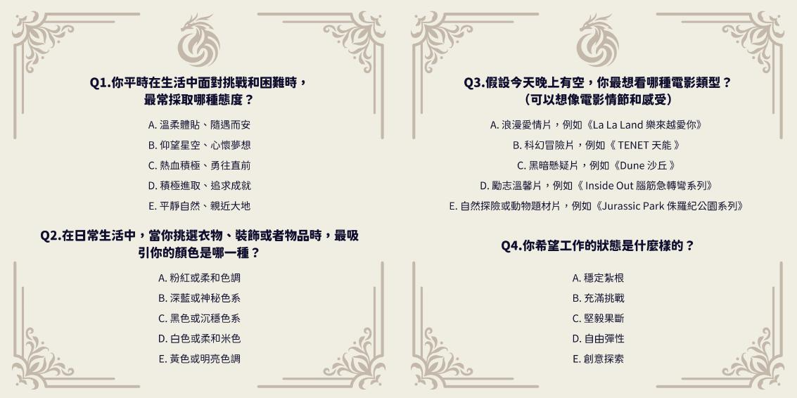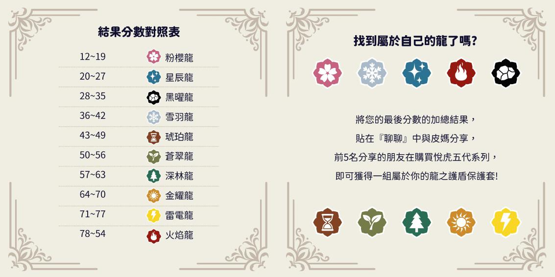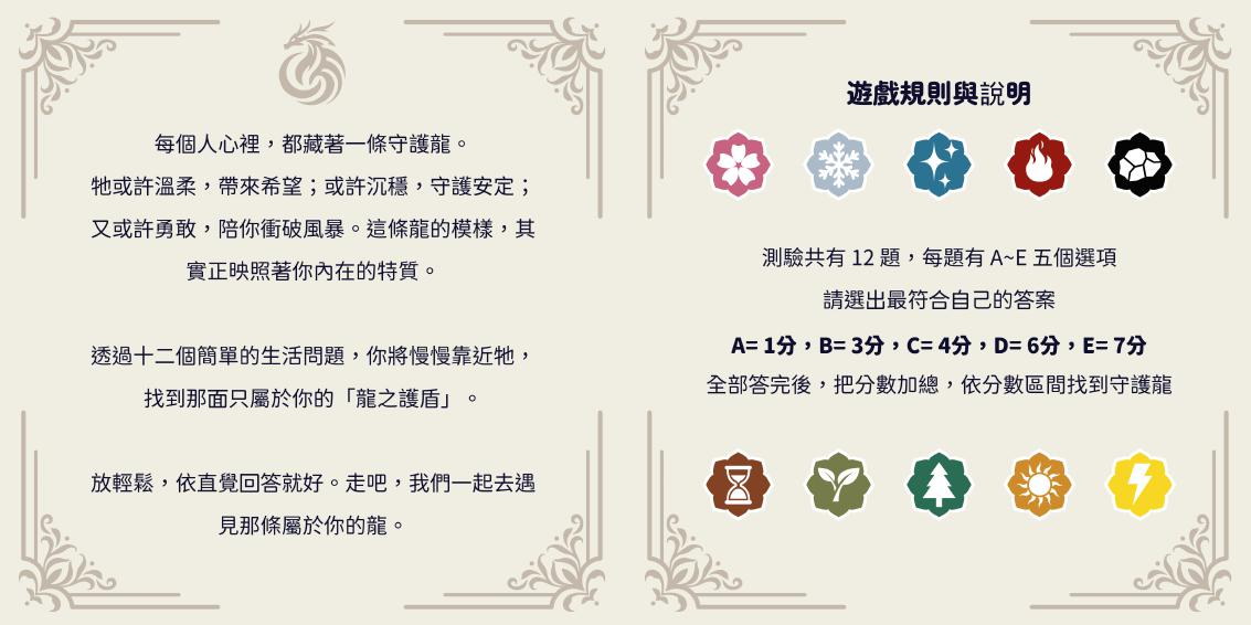 購買前對於心理測驗有興趣的朋友,可以先玩玩看簡易的測驗來尋找屬於妳/你的護盾龍。