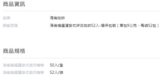 海倫精選濾掛式綜合咖啡52入-環保包裝(單包9公克,每袋52包)