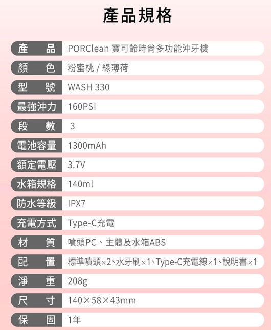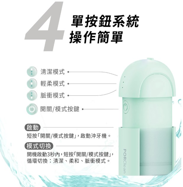 G-寶可齡PORClean WASH 330 時尚多功能沖牙機-綠薄荷