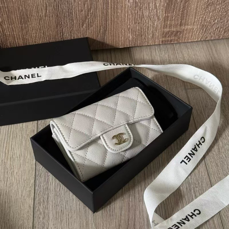 【現貨在台實拍】Chanel Flap 灰白色皮革翻蓋零錢卡包|ASCE精品代購
