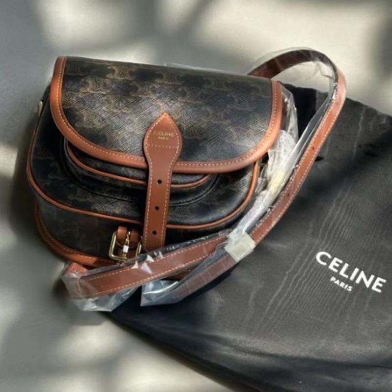 【現貨在台實拍】Celine Triomphe Folco 棕色老花馬鞍包|ASCE精品代購
