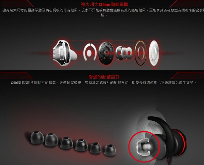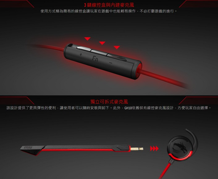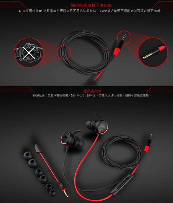 MSI微星 GH10 In-ear GAMING Headset 耳塞式電競耳機