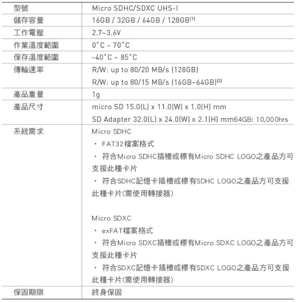 • 尺寸:micro SD 15.0(L) x 11.0(W) x 1.0