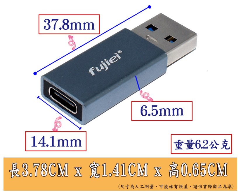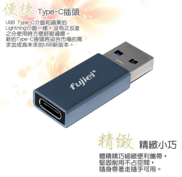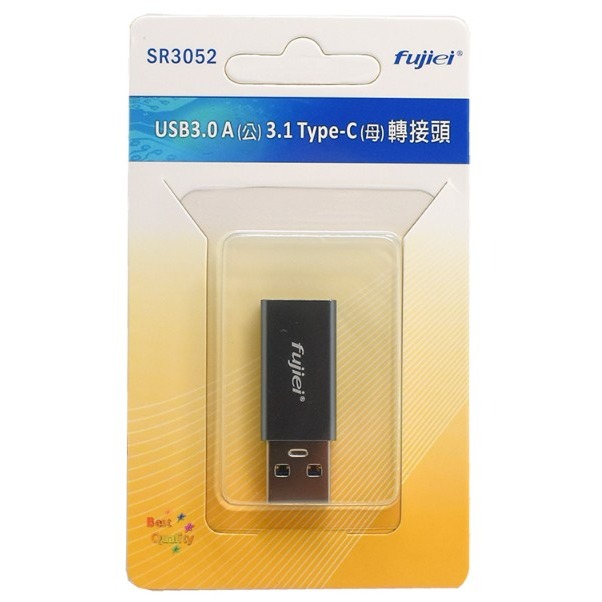 fujiei USB 3.0 A (公) 轉3.1 Type-C (母) 鋁合金轉接頭 (SR3052)