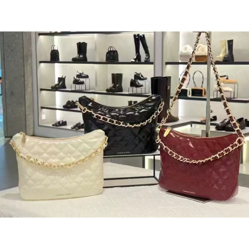 開發票🧾Chrs代購🖤新加坡小CK✨24秋冬新品 復古菱格紋鍊條手提斜背包