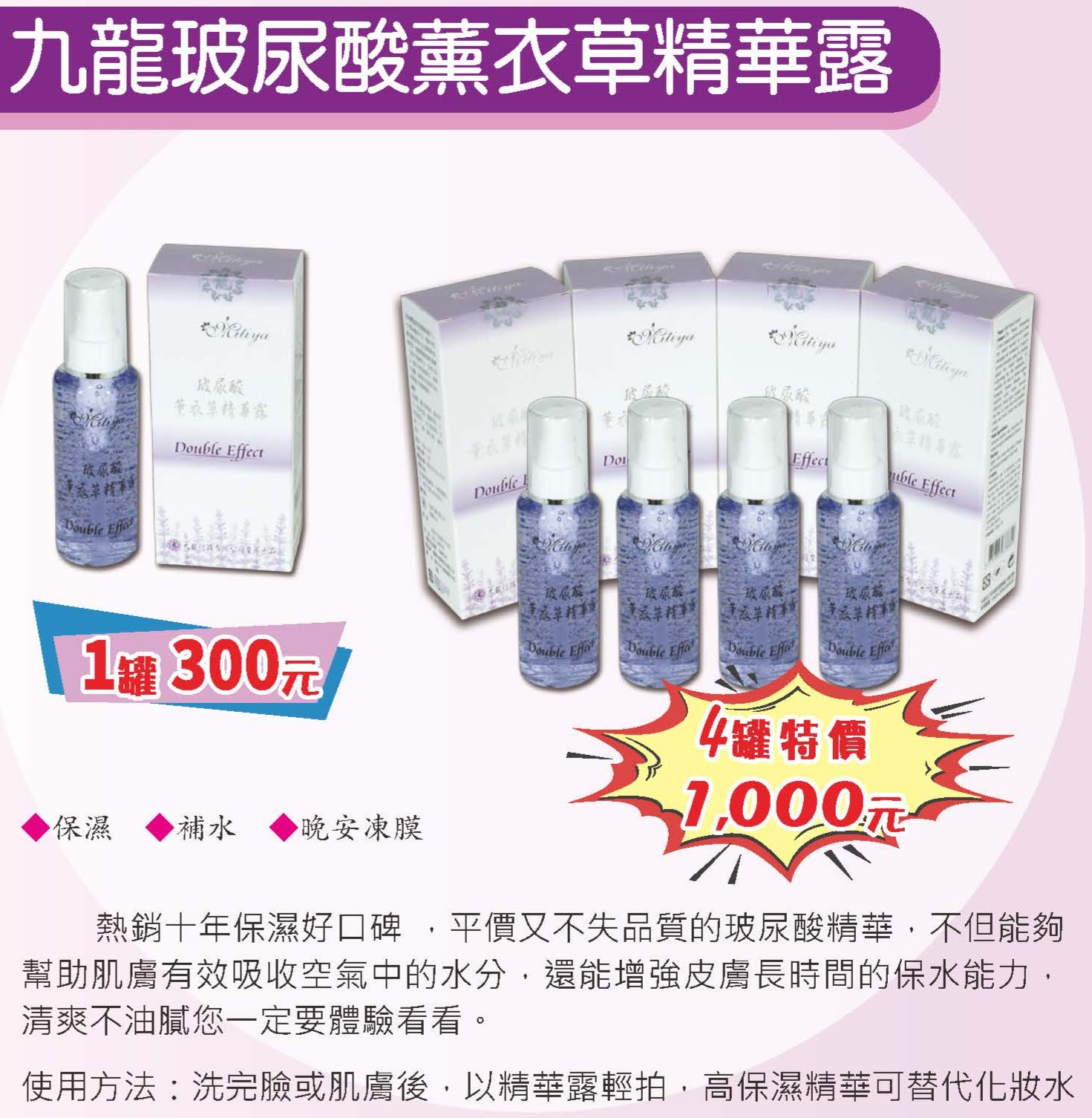 九龍玻尿酸薰衣草保濕精華露
