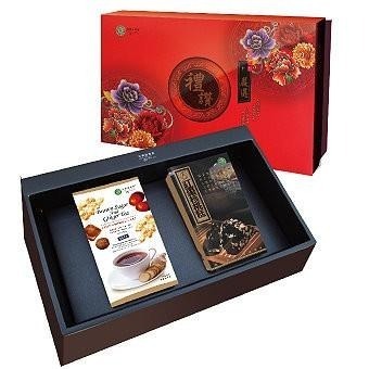 內容包裝:整盒包含桂圓紅棗薑母茶480公克/盒、黑棗核桃糕250公克/盒。