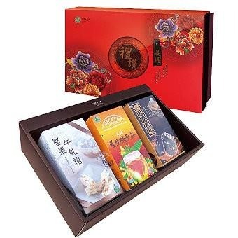 內容包裝:整盒包含黑棗核桃糕250公克/盒、補氣茶15包/盒、堅果牛軋糖250公克/盒。