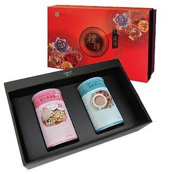 內容包裝:整盒包含枸杞、紅棗、黃耆食膳養生粉500公克/罐、茯苓百合蓮子養生湯500公克/罐。