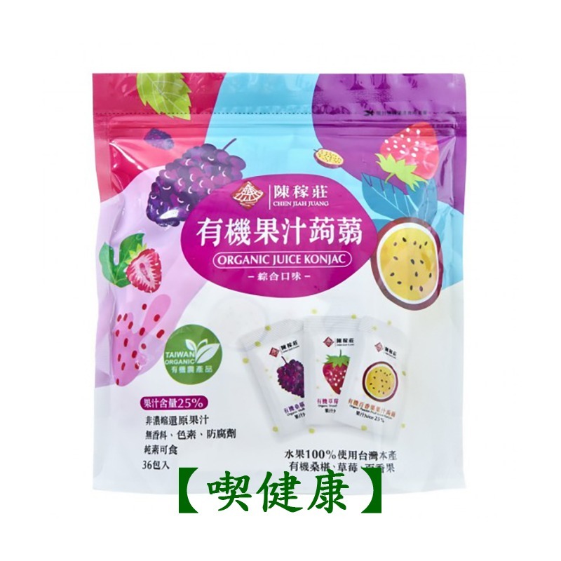#【喫健康】陳稼莊有機果汁蒟蒻-綜合口味(桑椹、草莓、百香果)36包/另有單一口味包裝,紅心土芭樂茶,桑葉粉,冬瓜露