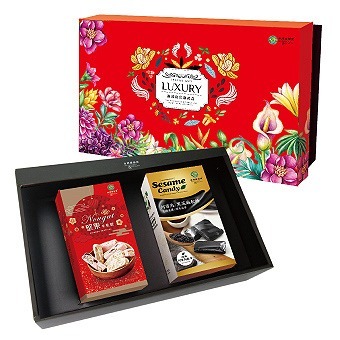 #【喫健康】台灣綠源寶嚴選禮讚年節養生禮盒C-4(牛軋芝麻糖禮盒組)/純手工堅果牛軋糖+黑棗核桃糕