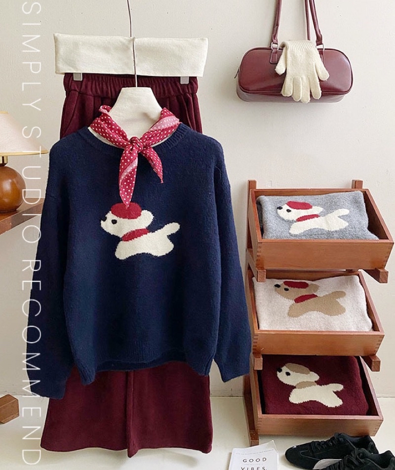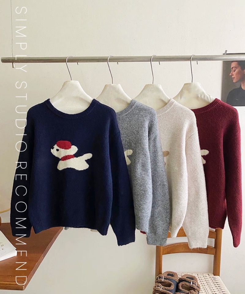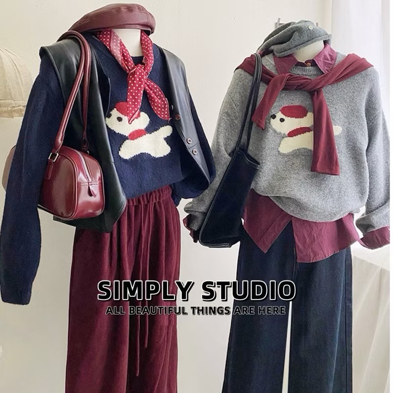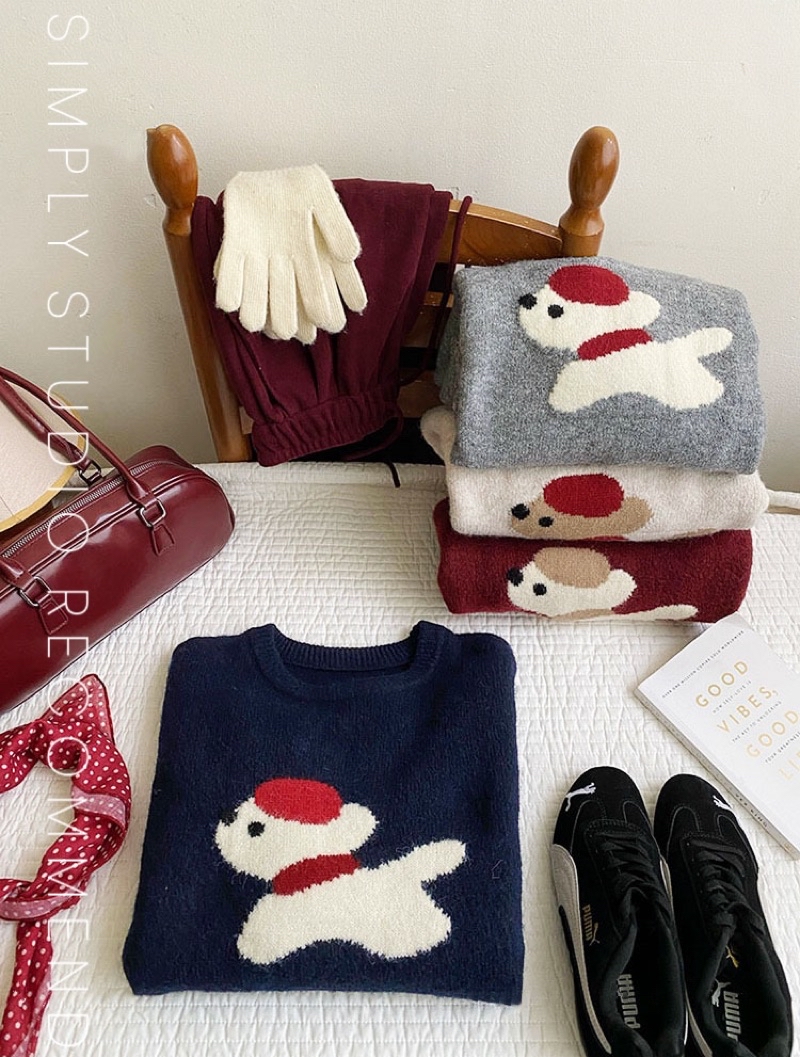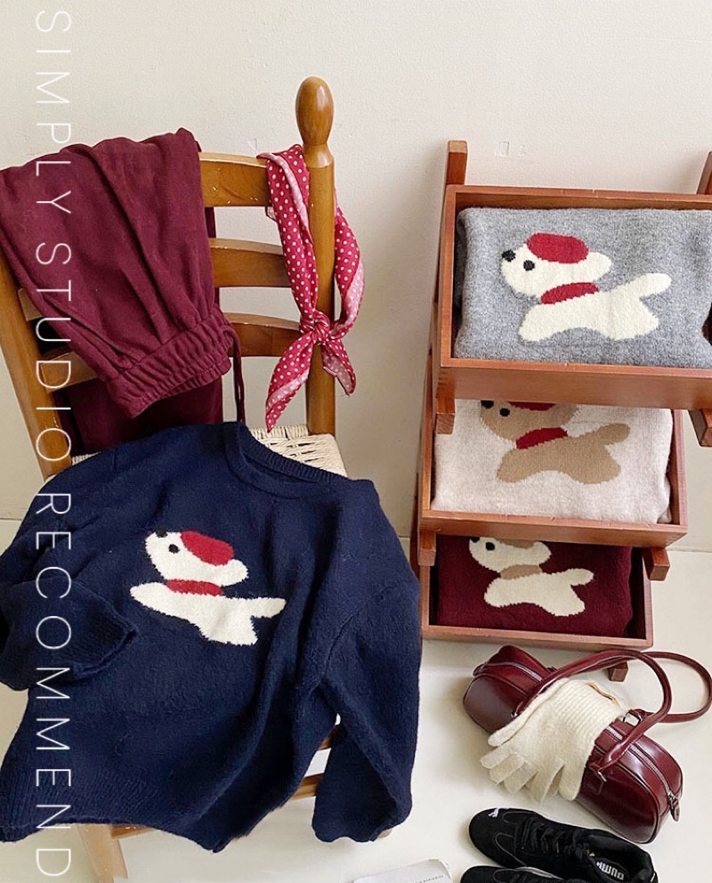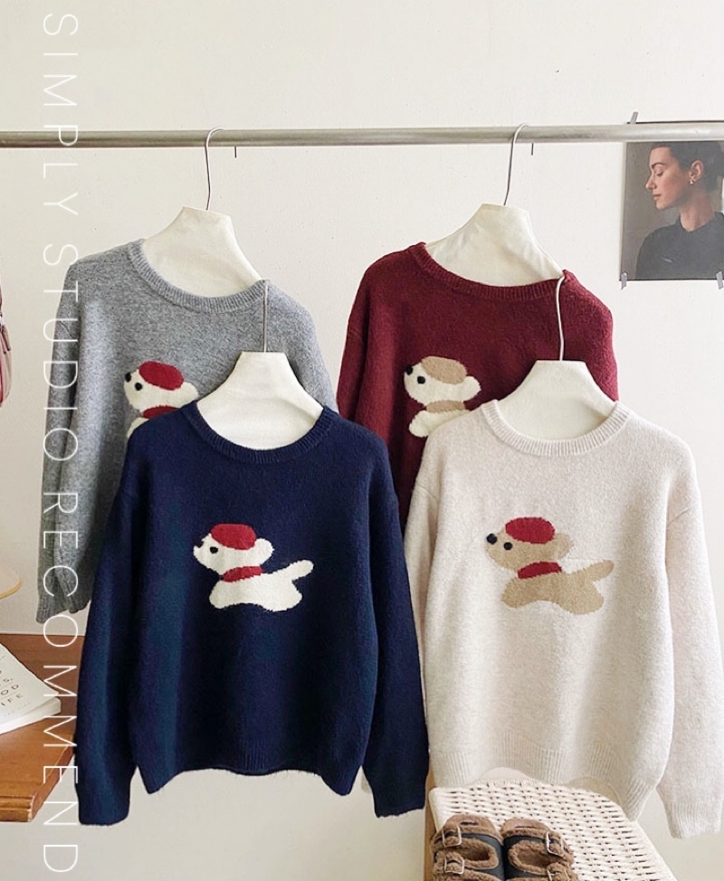 𝐒𝐈𝐌𝐏𝐋𝐘 𝐒𝐓𝐔𝐃𝐈𝐎 ☻ 韓版 秋季新款 童趣小紅帽狗狗提花慵懶軟糯針織衫上衣 4色售