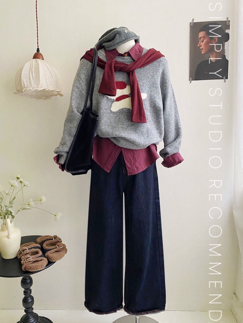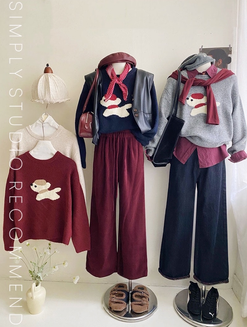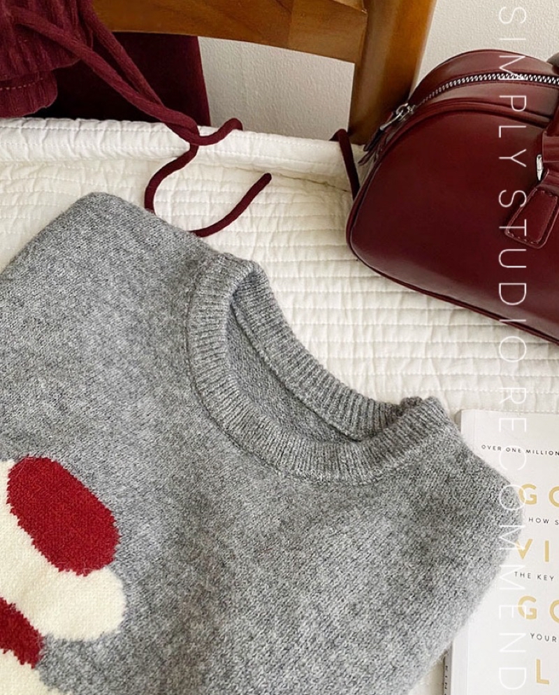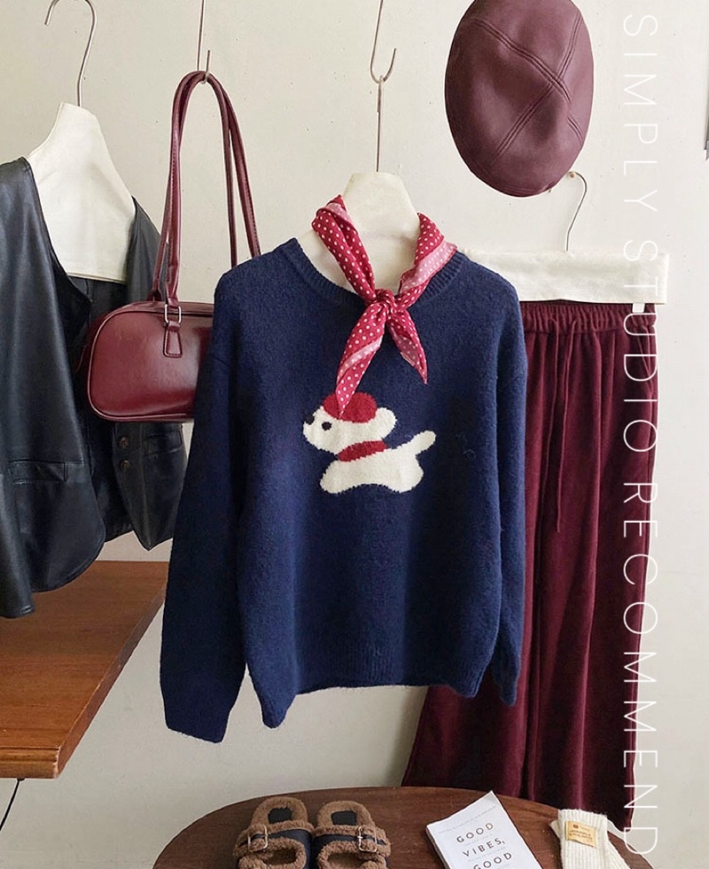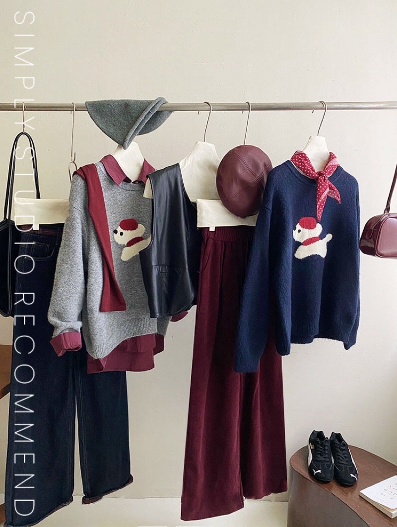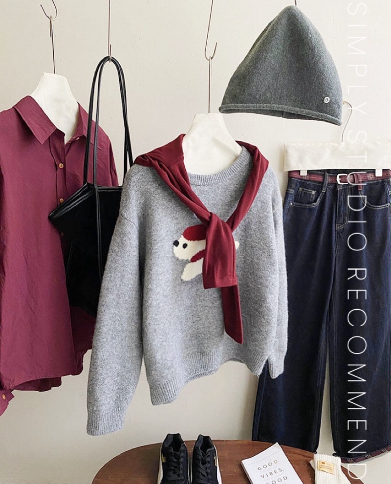𝐒𝐈𝐌𝐏𝐋𝐘 𝐒𝐓𝐔𝐃𝐈𝐎 ☻ 韓版 秋季新款 童趣小紅帽狗狗提花慵懶軟糯針織衫上衣 4色售