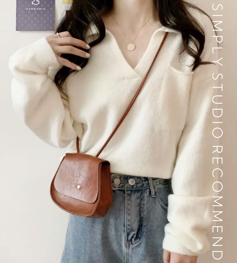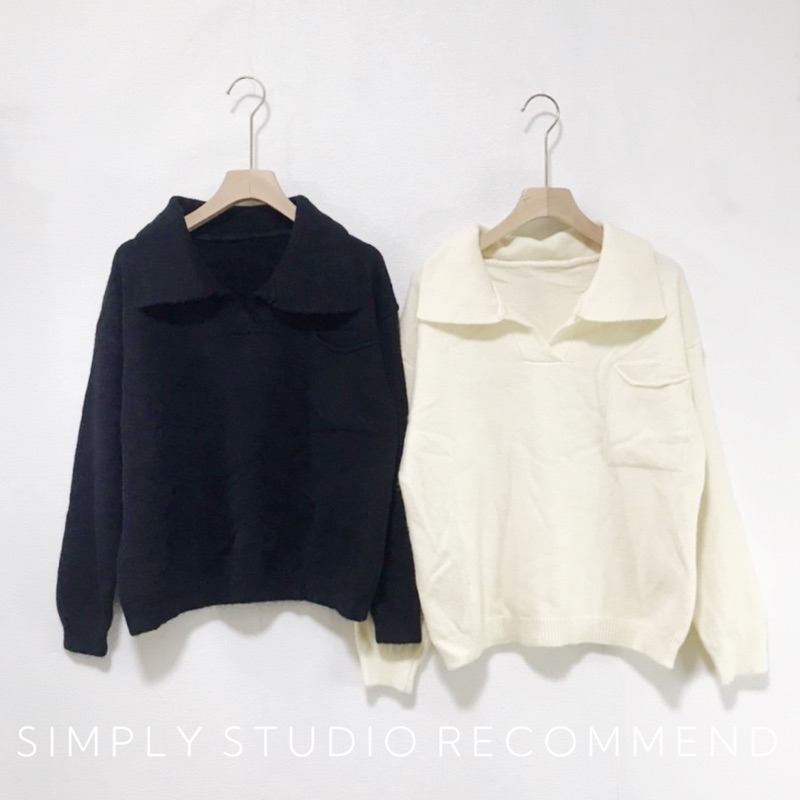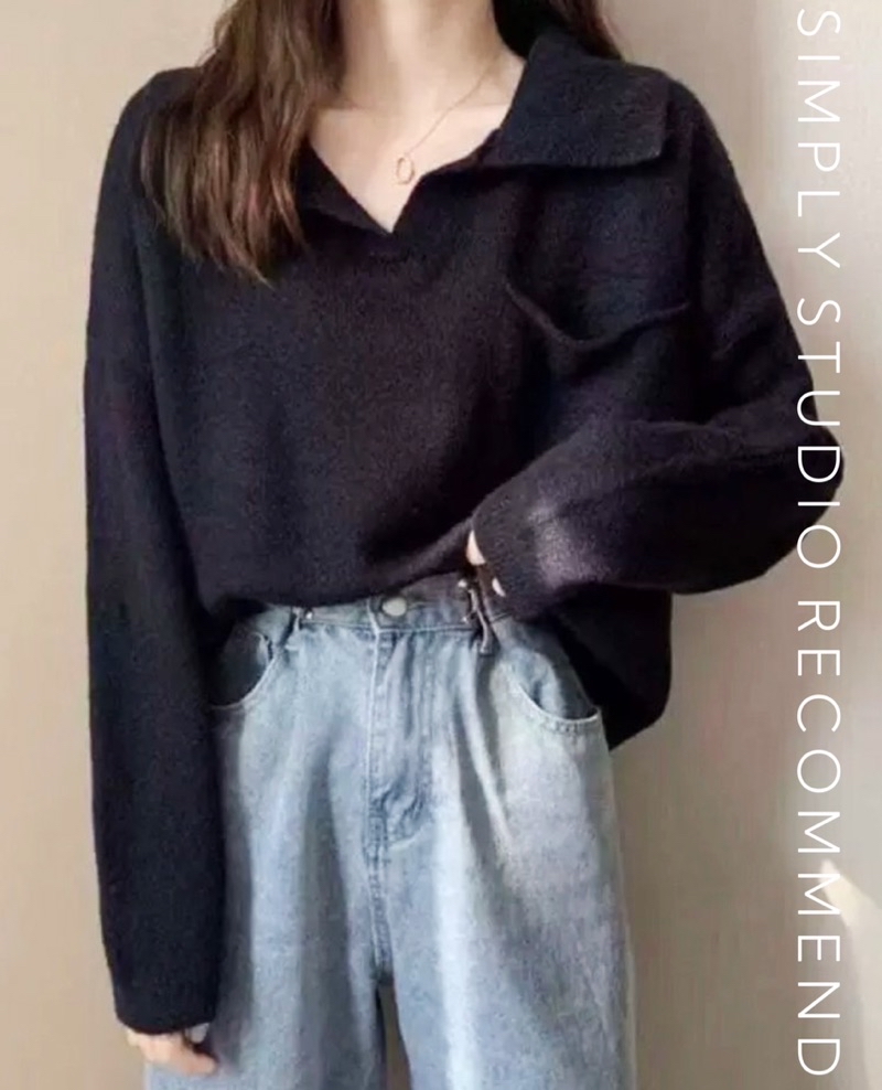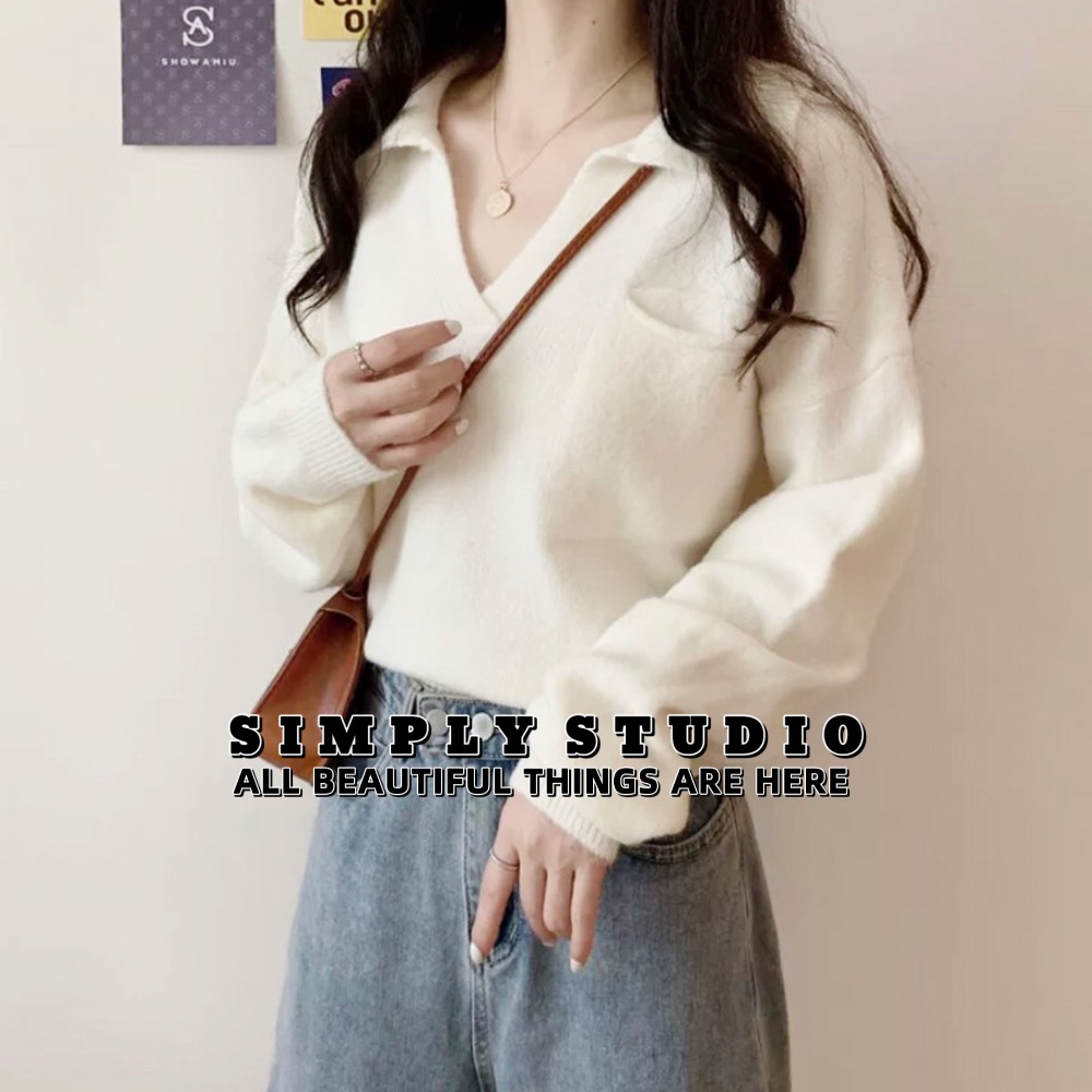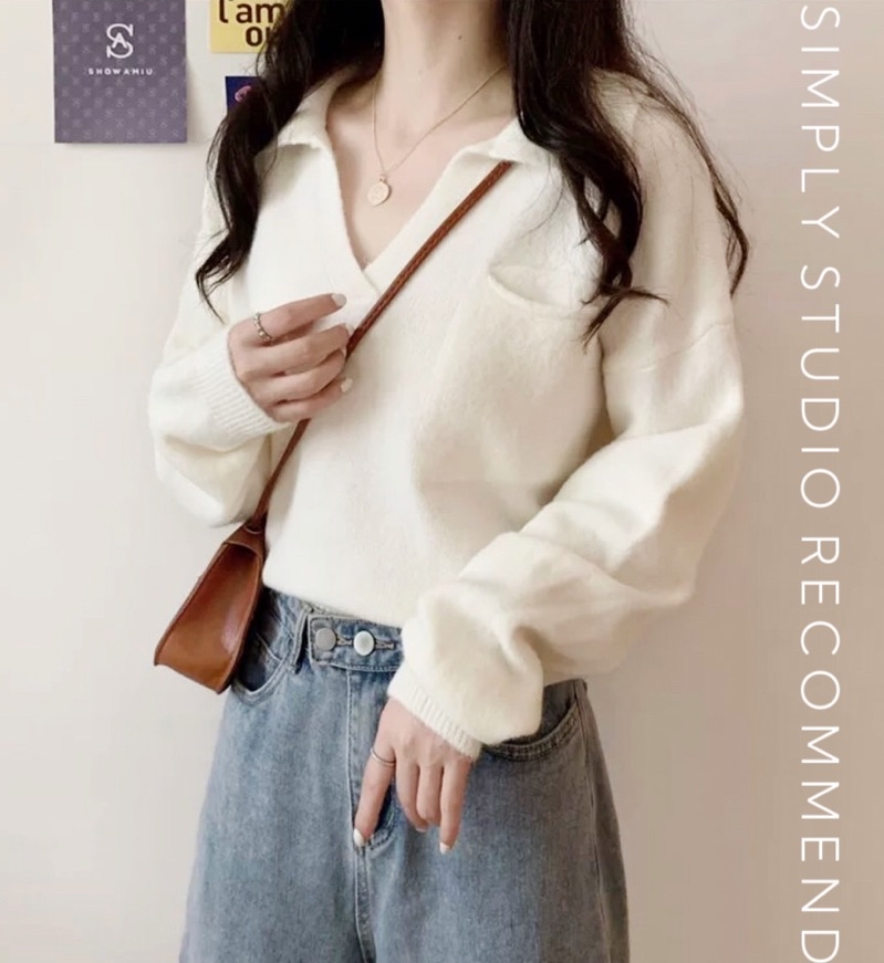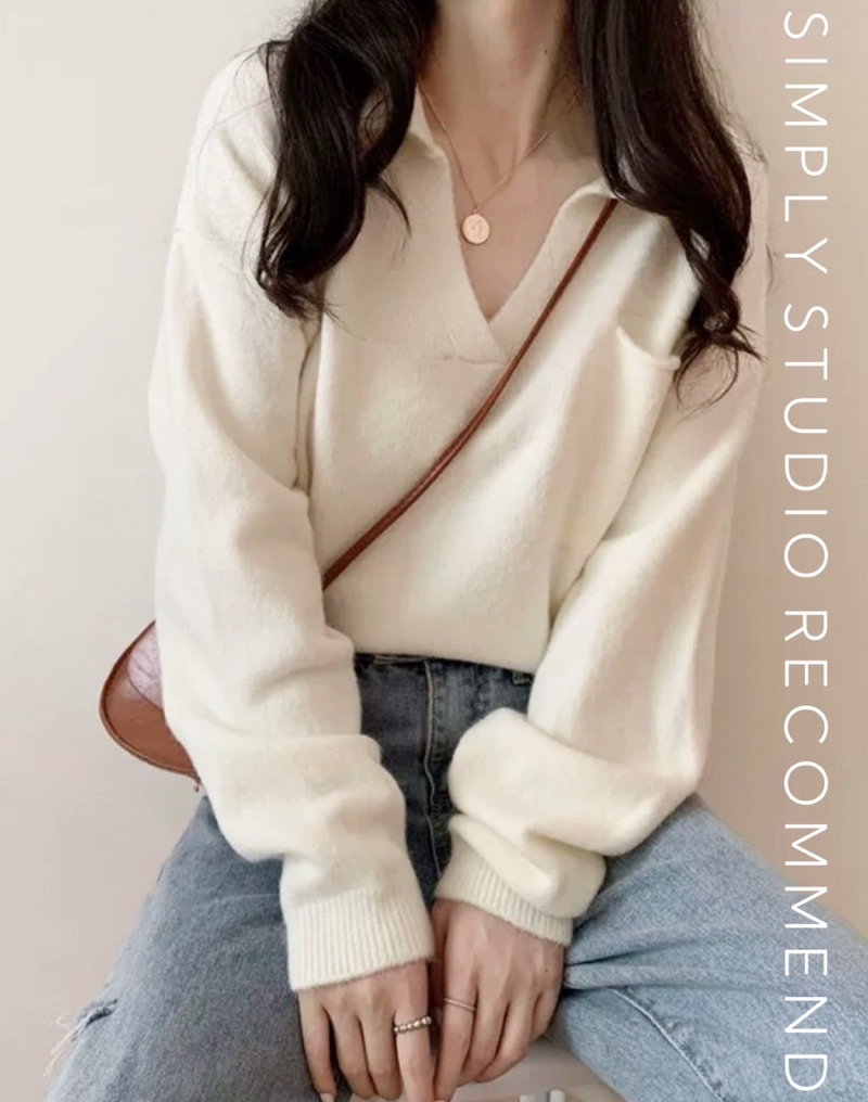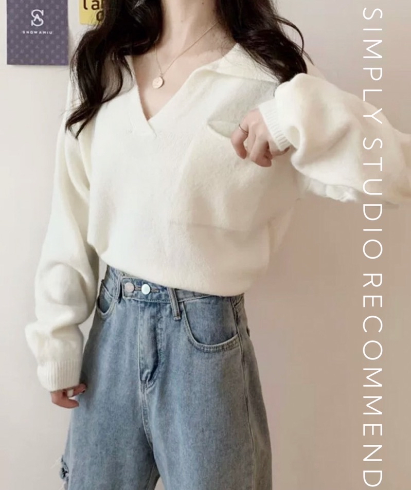 𝐒𝐈𝐌𝐏𝐋𝐘 𝐒𝐓𝐔𝐃𝐈𝐎 ☻ 韓版 秋冬新款 慵懶 V領針織毛衣 2色售