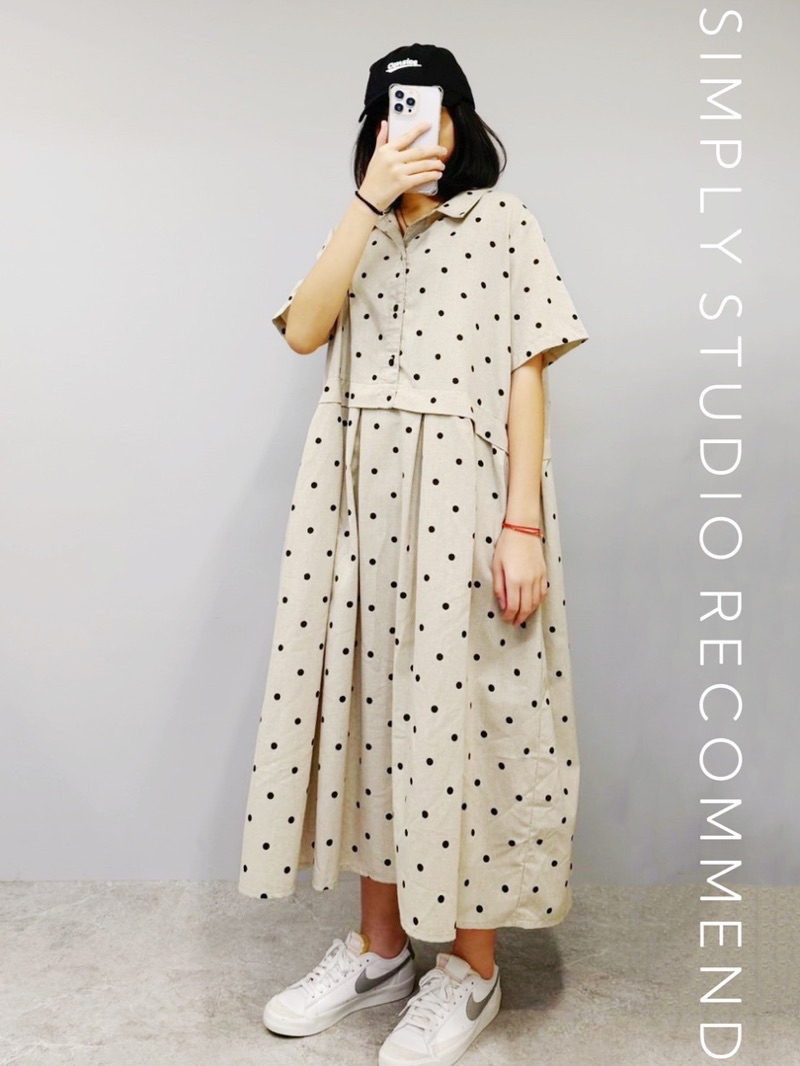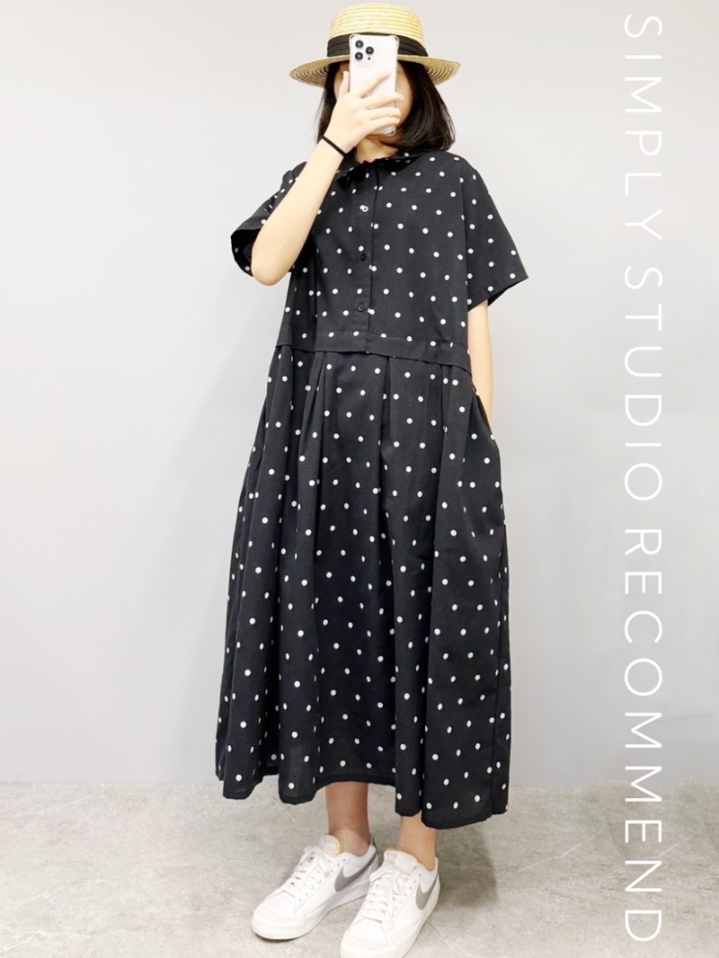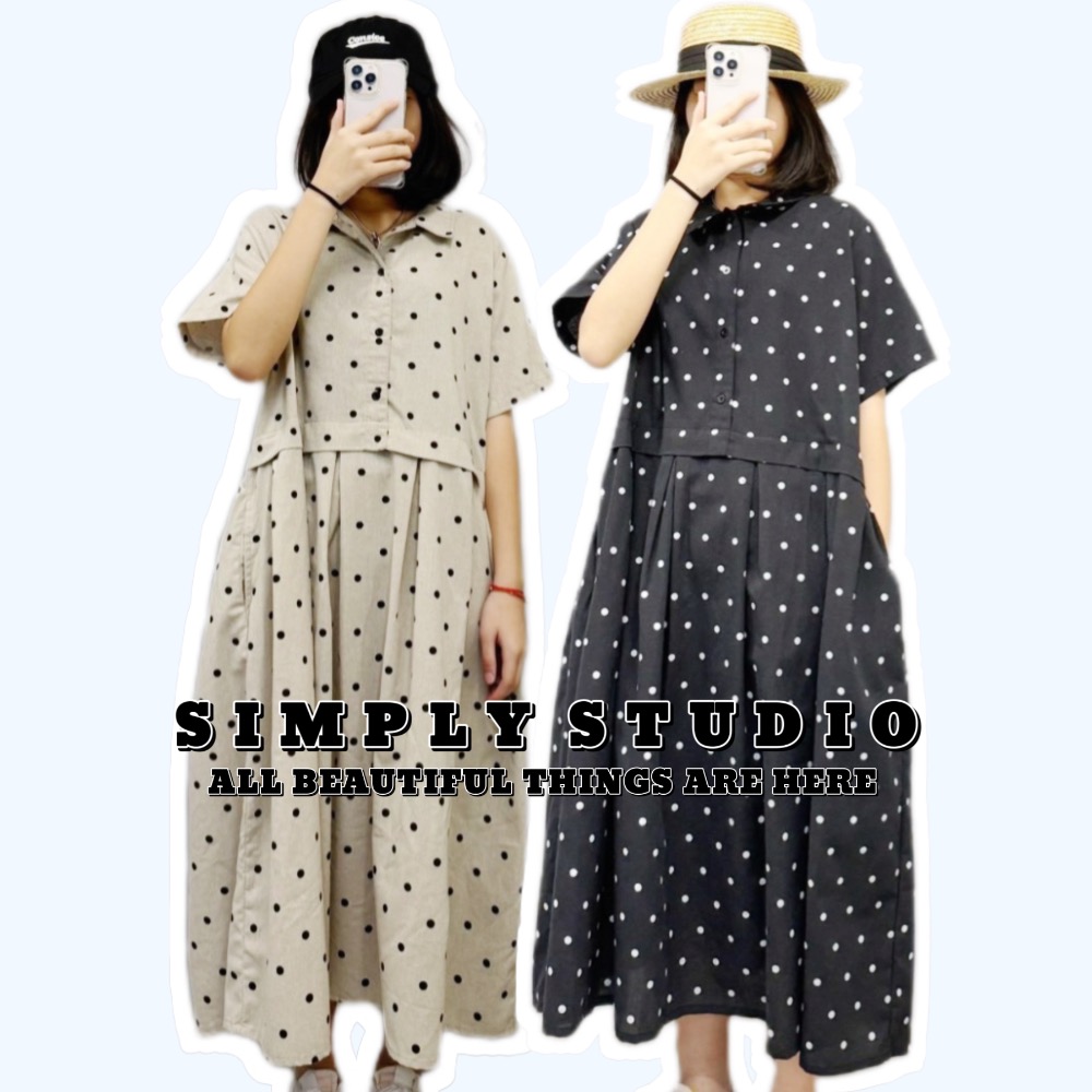 𝐒𝐈𝐌𝐏𝐋𝐘 𝐒𝐓𝐔𝐃𝐈𝐎 ☻ 韓版 初春新款 森女日系文藝拼接點點洋裝 2色售
