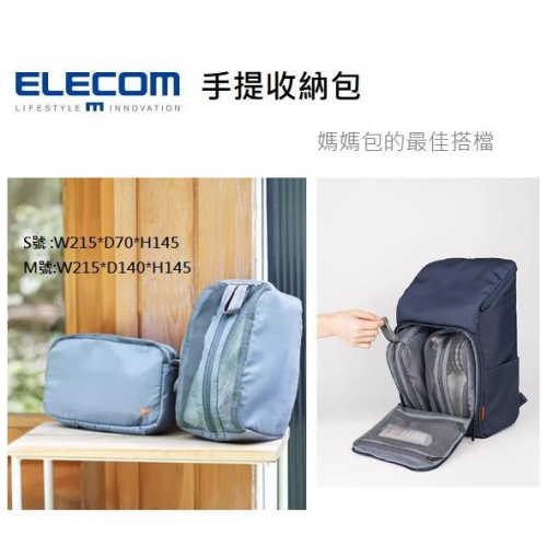 ELECOM 收納包 可當媽媽包收納包.化妝包.配件包 S號:W215*D70*H145 M號:W215*D140*H145 #收納包 #ELECOM #媽媽包 #化妝包 #配件包