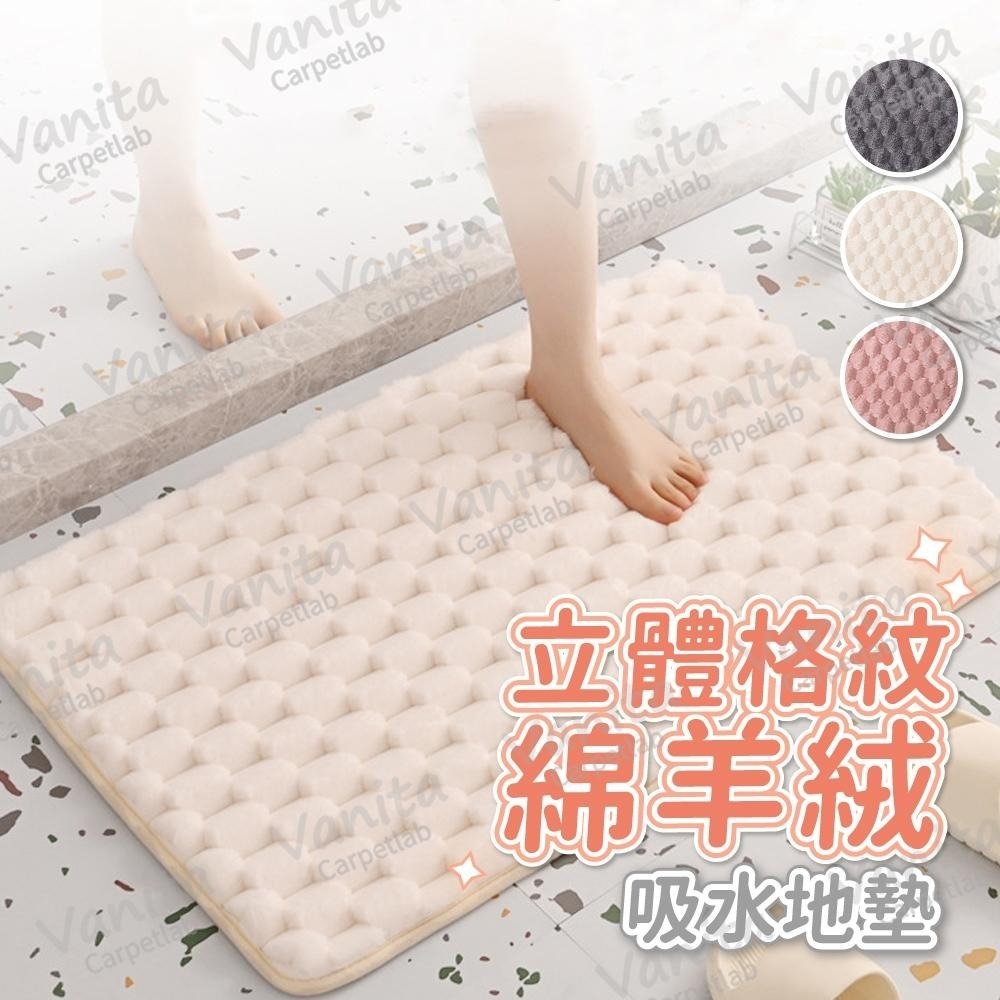 在台現貨|立體格紋綿羊絨吸水地墊 40*60cm 3色 房間裝飾 ins 典雅 宮廷風 少女 臥室 床邊 腳踏墊 地毯
