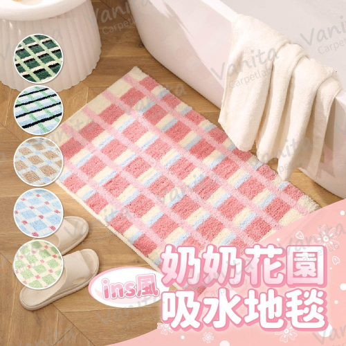 在台現貨|ins風奶奶花園吸水地毯 復古 可愛 絨毛 格紋 客廳踏墊 浴室吸水 植絨 臥室 毛巾 室內地毯 防滑
