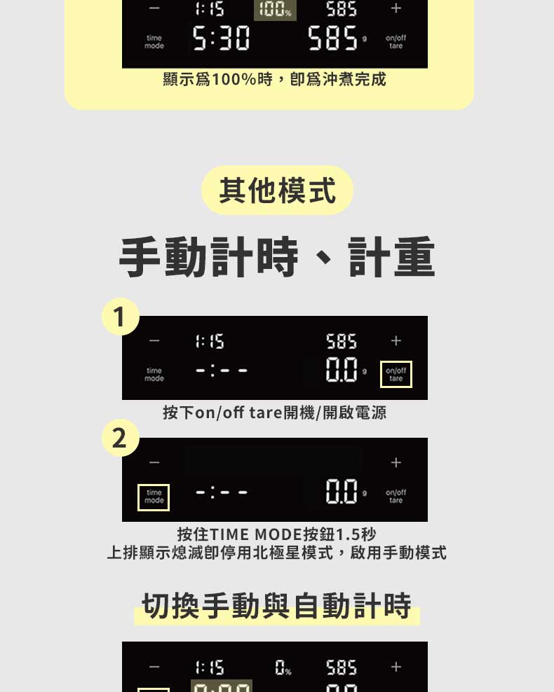 - Polaris模式:通過比例功能和百分比顯示來輔助實現理想萃取。
