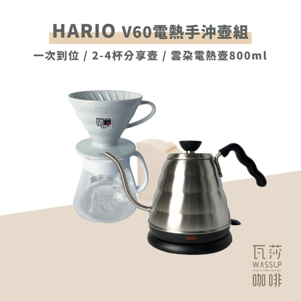 (現貨附發票) 瓦莎咖啡 EVKB-80HSV手沖咖啡壺組 HARIO 雲朵不銹鋼電熱細口壺+含蓋溫度計+手沖咖啡濾杯組