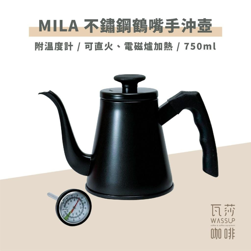 (現貨附發票) MILA 不鏽鋼鶴嘴手沖壺750ml 附溫度計 瓦莎咖啡