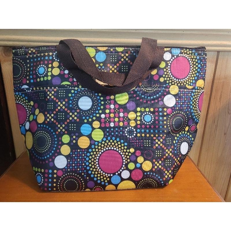 【樂樂的銅板雜貨店】手提保溫袋 點點印花鋁箔野餐袋 保冷袋 便攜式提袋 保冰便當袋