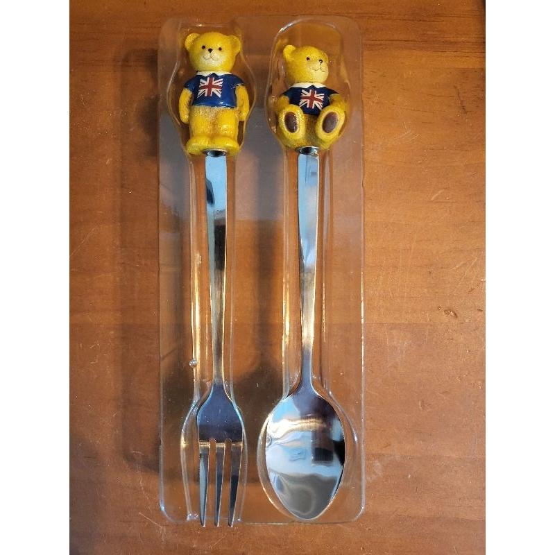 【樂樂的銅板雜貨店】經典泰迪熊造型叉匙組 湯匙 叉子 可愛泰迪熊 兒童叉匙組