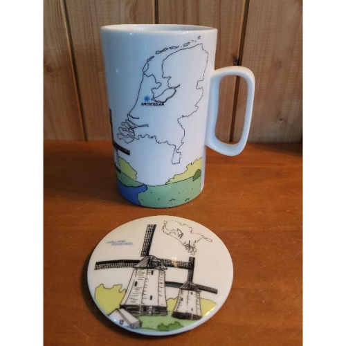 【樂樂的銅板雜貨店】 荷蘭風車 倫敦鐵橋 旅行風 手繪風馬克杯 插畫杯 咖啡杯 高杯 杯子 杯蓋 380ml