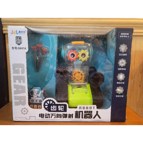【樂樂的銅板雜貨店】電動透明齒輪機器人 燈光音樂 萬向彈射左右行走 發射子彈 兒童玩具 機器人玩具