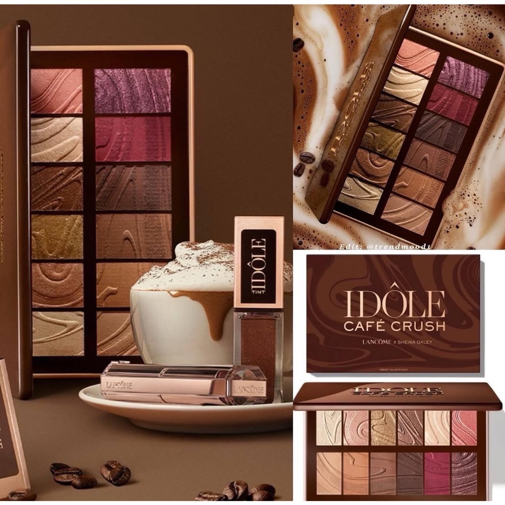 Lancôme 攜手知名彩妝師 Sheika Daley 合作推出的 Idôle Café Crush Maxi Palette,是一款專為展現自然優雅與溫暖魅力而設計的限量眼影盤。其靈感來自咖啡的溫潤色調,完美詮釋裸色系與大地色系的多元搭配可能。