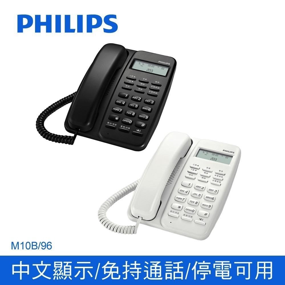 PHILIPS 中文來電顯示有線電話M10W/96 黑/白 通話紀錄記憶 快速撥號 免持