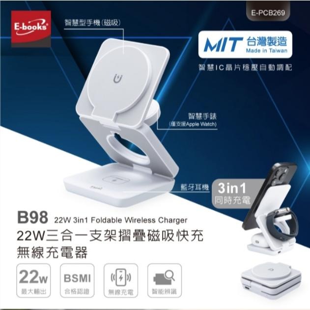E-books B98 22W三合一支架摺疊磁吸快充無線充電器 方便折疊 快充架 追劇神器