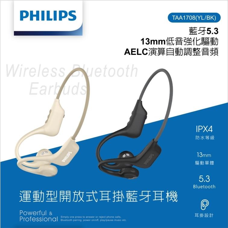 PHILIPS 運動型開放式耳掛藍牙耳機 (TAA1708) 黑/米 運動耳機 健身房 耳掛式 瑜珈 皮拉提斯