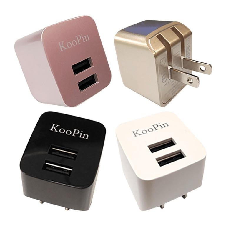 KooPin 輕旅行2.4A雙孔摺疊充電器 充電頭 雙孔USB 智慧輸出(隨機出色,有顏色需求請聊聊)