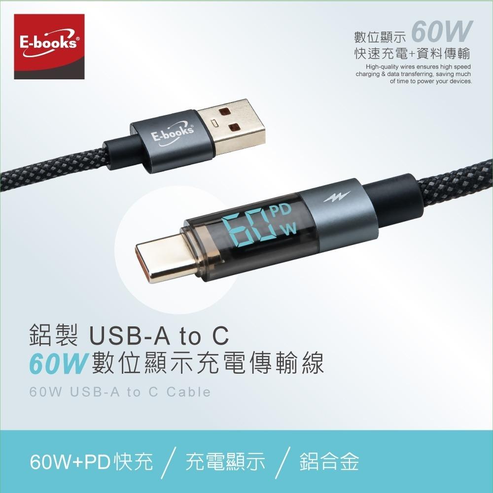 E-books XA50鋁製TYPE C 60W數顯充傳線/1M